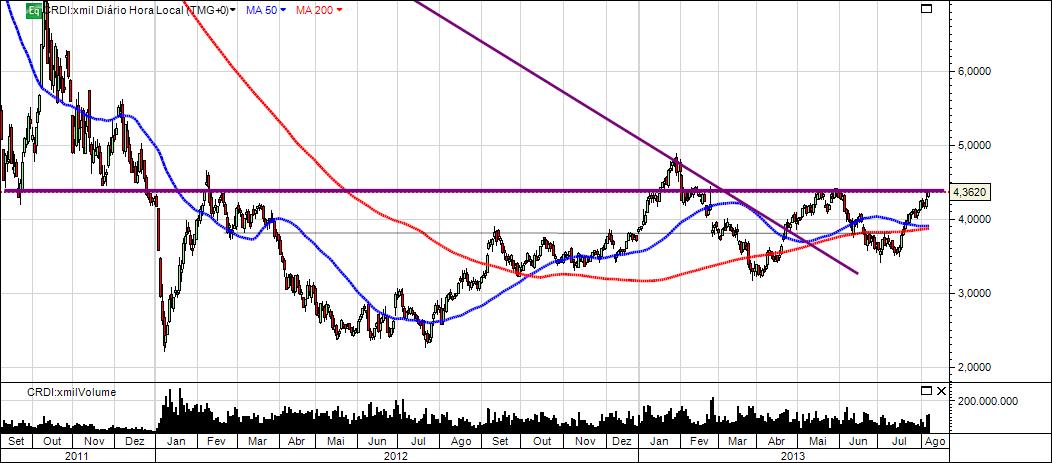 A CRDI deu hj um bom passo na conquista da zona dos 4,40€. Hoje fechou a 4,56€ com uma subida de 4,5%.