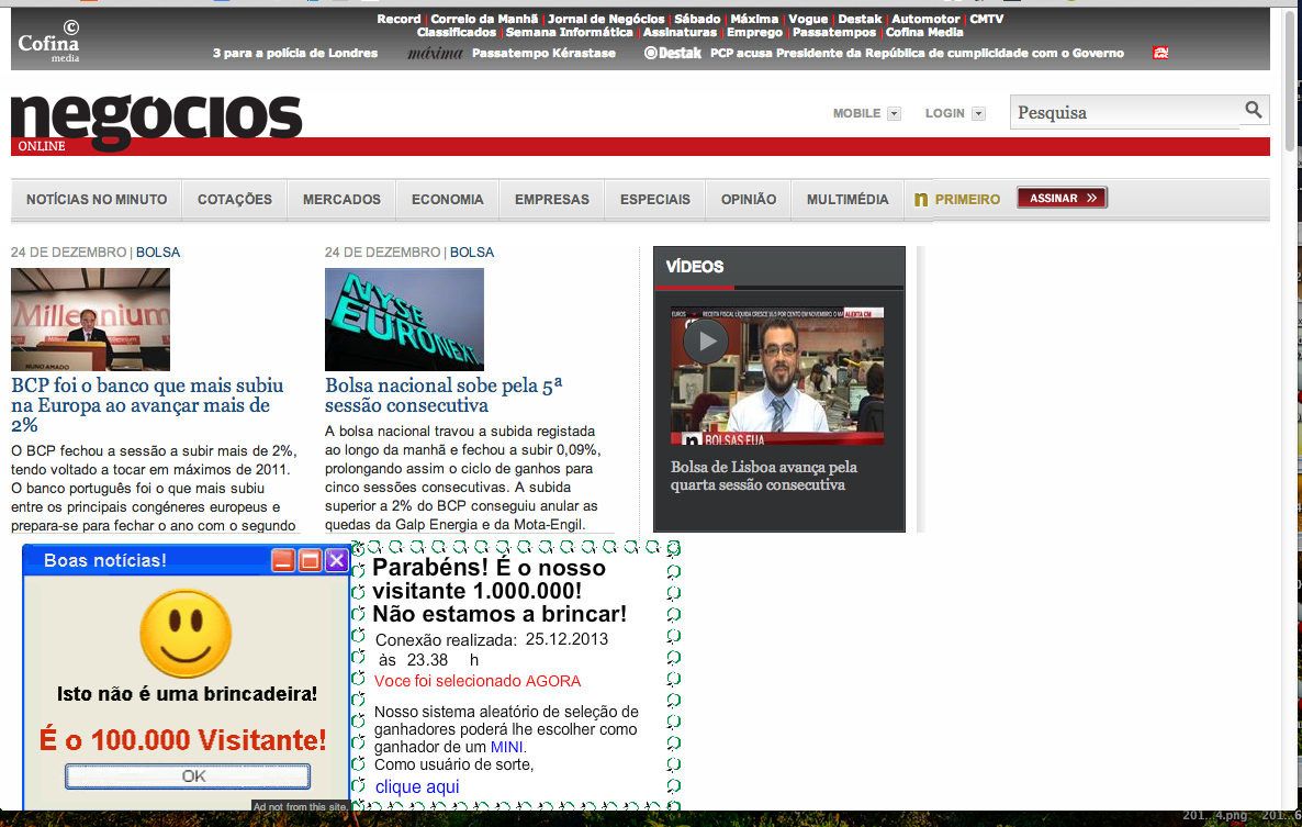Mas acho que nunca tive esse pop up do milionésimo visitante...