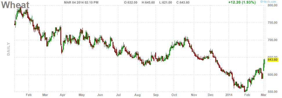 Sendo a Ucrânia um dos principais produtores mundiais de trigo não sei até que ponto esta situação politica não vai afetar a produção... e influenciar cotações...