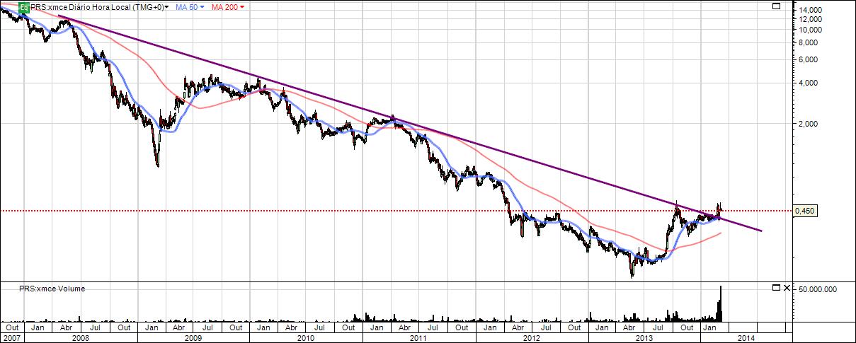 A quebra da zona dos 0,50€ poderá significar uma inversão da expectativas para a evolução do título. Nos últimos tempos fez várias incursões nesse sentido, sempre goradas.