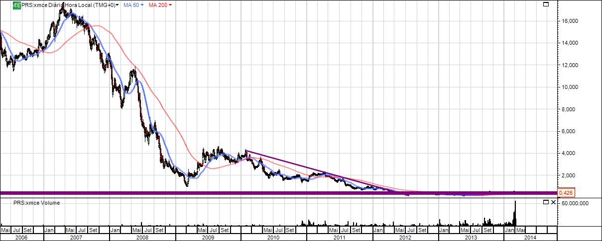 O Grupo Prisa SA ( PRS:xmce ) quebrou nos últimos tempos uma LTA no gráfico logarítmico ( não utilizo muitas vezes, mas apenas em casos em que o máximos histórico é 30 vezes