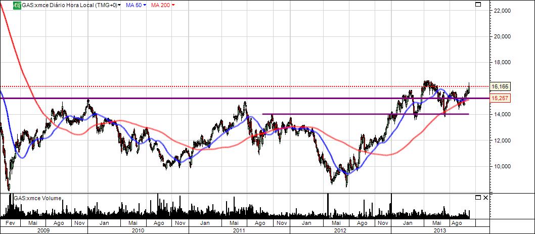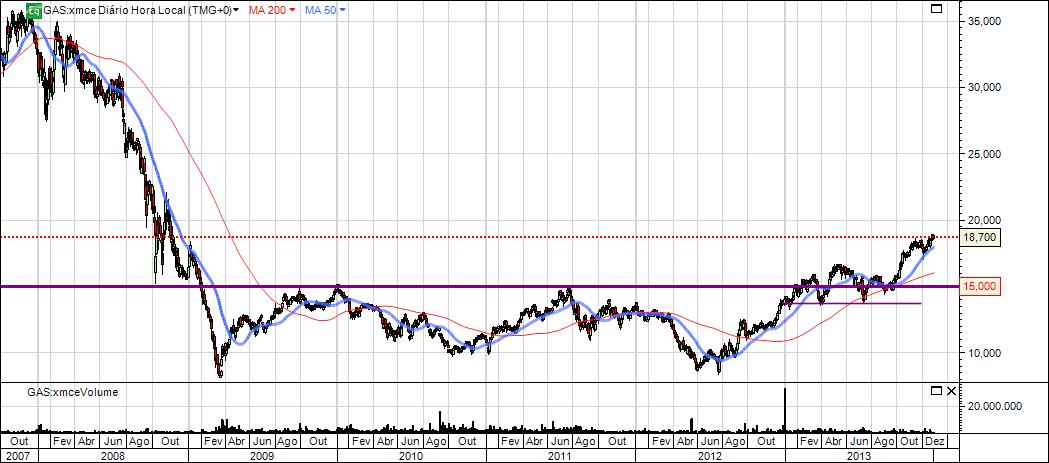A Gas:xmce está em máximos de 5 anos. Houve uma batalha campal durante uns meses em torno dos 15€, mas parece-me que se encontro o vencedor: Os touros.
