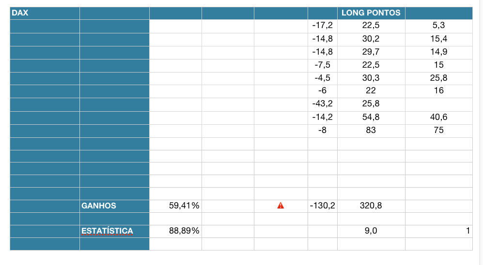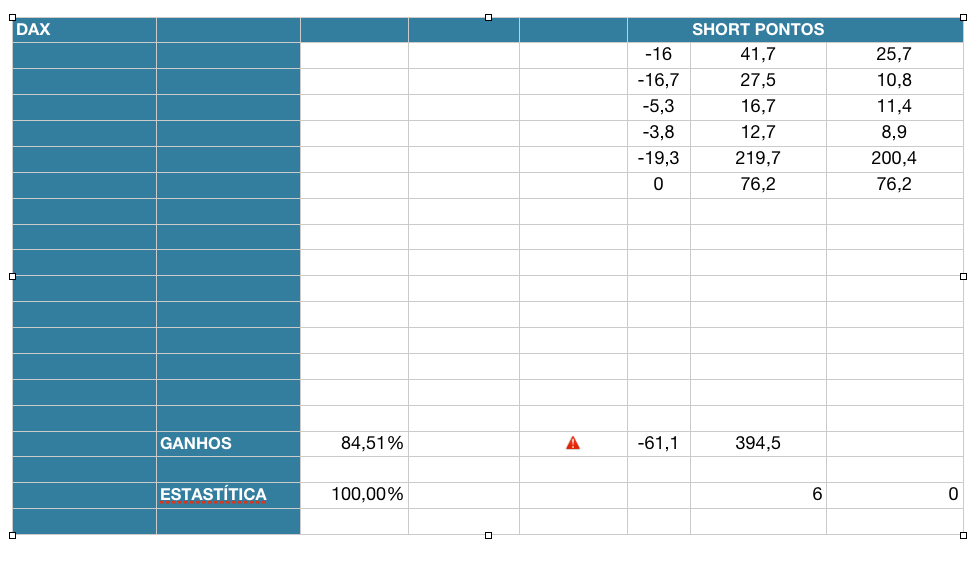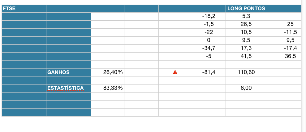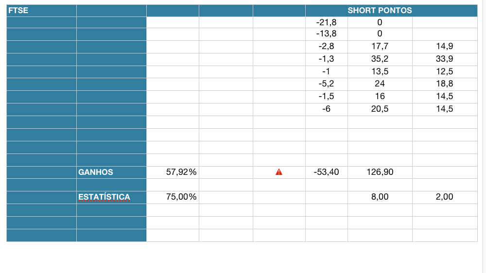 Anexo fotos de uma amostragem que fiz durante 1 mês e meio e pretendo continuar a colectar diariamente no periodo de sessão aberta para o DAX e FTSE e do SPX para o periodo que inclui a Europa de manhã. Pretendo alargar ao DOW.