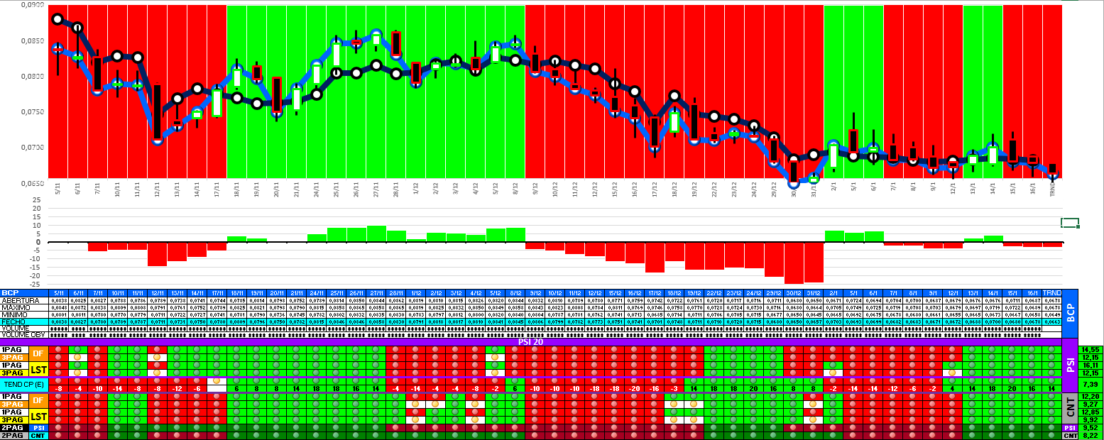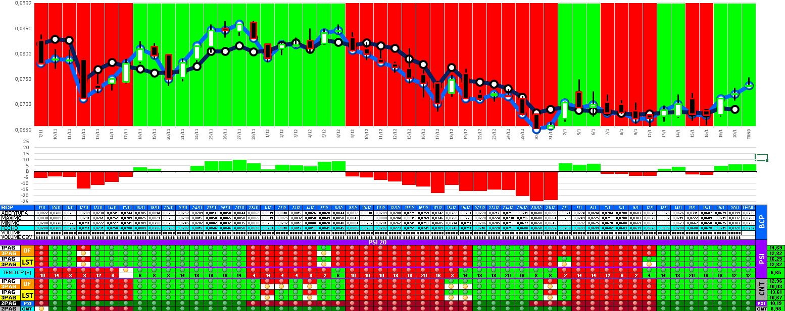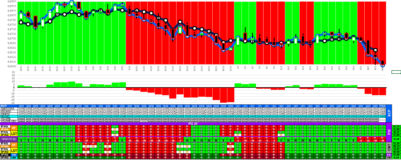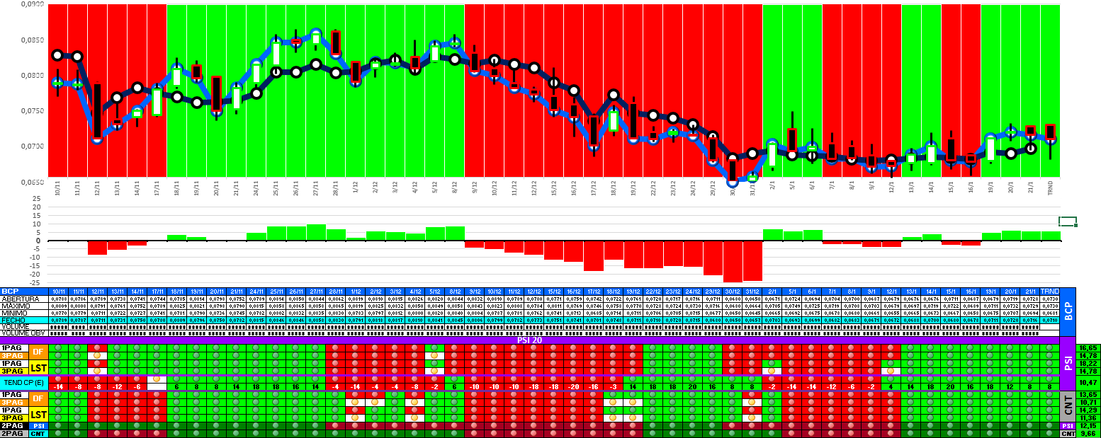 O modelo ainda está a digerir a queda dos 8% da semana passada, mas começa a dar sinas de criar uma onda. Está a ganhar energia... O lado positivo adicional é que o Indice PSI 20 deu hoje sinal de arrancar e poderá levar o BCP por arrasto http://caldeiraodebolsa.jornaldenegocios.pt/viewtopic.php?f=3&t=84037&p=1170344#p1170344. O BPI deu hoje um claro sinal de arrancada.