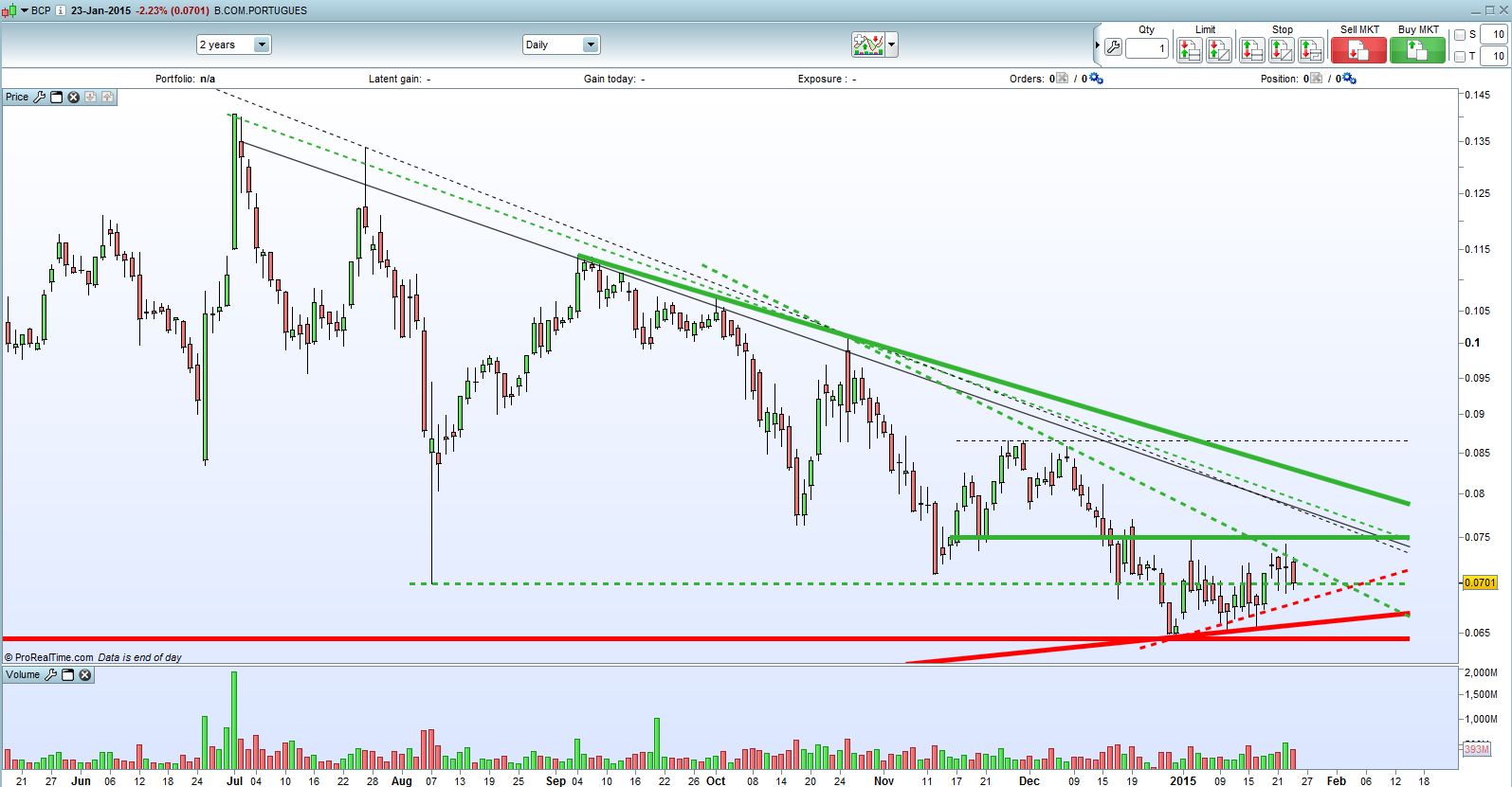 No entanto, confesso que não estou a entender nada do que se está a passar... compreendo que o mercado (no que se refere à banca) está nervoso e que o BPI amanhã ao final do dia vai apresentar resultados negativos, mas esta queda hoje do BCP... não tem explicação!? Será que alguém já sabe os resultados do BCP e tratou de tirar o cavalinho da chuva... Pelo que sei, atendendo ao que se passou nos últimos anos, as expetativas de resultados para o BCP em 2014 até são animadoras... esperava / espero uma boa reação para o pré e pós apresentação de contas... , mas será que alguém já tem indícios dos resultados, ou será que forçaram a queda para apanhar os stop loss todos... amanhã algumas coisas vão-se clarificar - vamos ver se recupera... espero que sim!