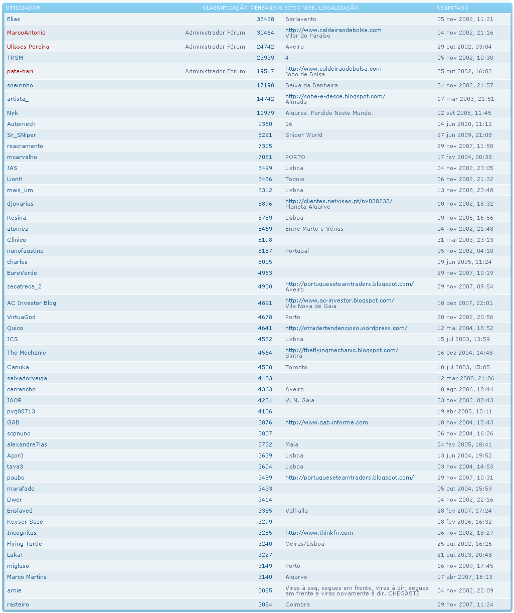 Re: OT - Ranking de utilizadores por posts