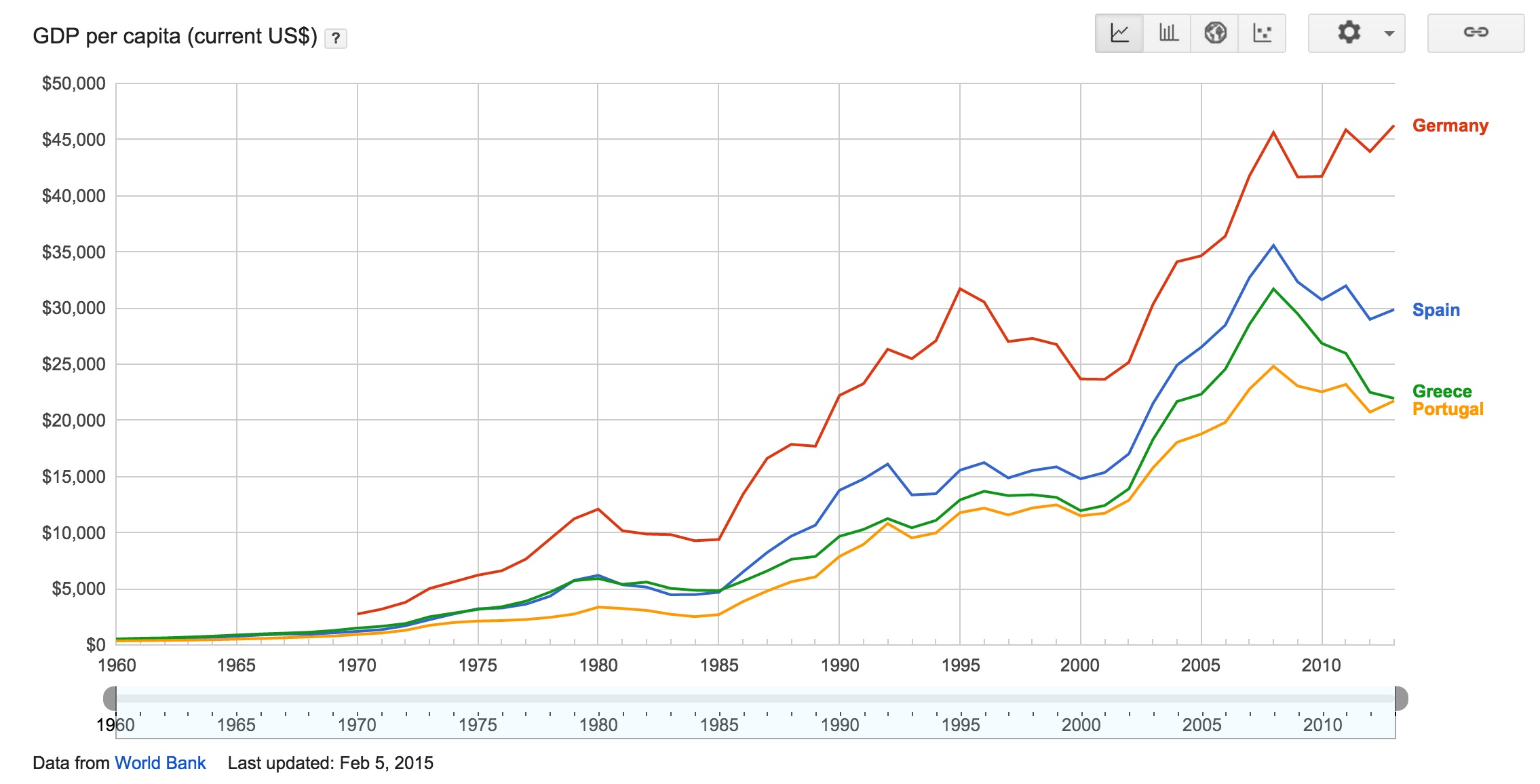 Não acredito portanto em afirmações que a Alemanha tire vantagens do Euro á custa dos periféricos e parecem-me afirmações infundadas.