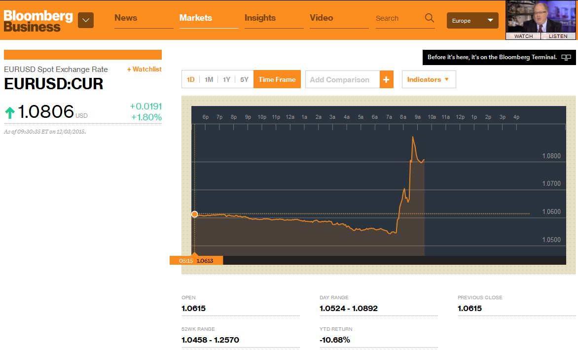 Segundo a Bloomberg, chegou muito perto do 1.09, o intervalo diário foi entre 1.0524 - 1.0892, uma diferença de 372 pips!