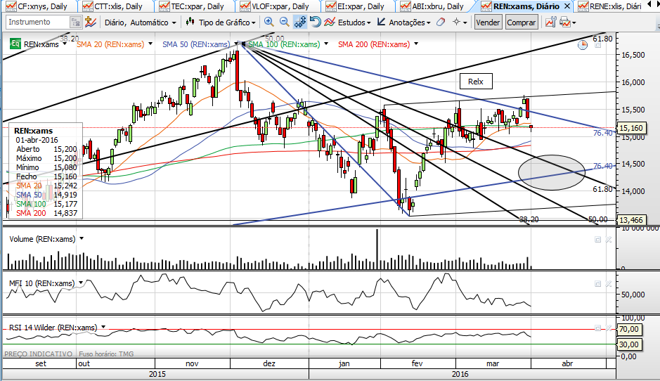 Orientando-me pelas Fiboncci Fan (ff), se a cotação entrar na elipse assinalada no gráfico, penso em entrar longo com uma tranche. Tendo em consideração se acontece antes ou depois do ex-dividendo.