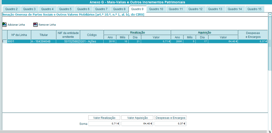 Não fiz nenhuma venda em 2016. E a única operação que existe é a indicada em cima. Portanto o que, e como, devo indicar no anexo G? Alguém tem ideia? Obrigado.