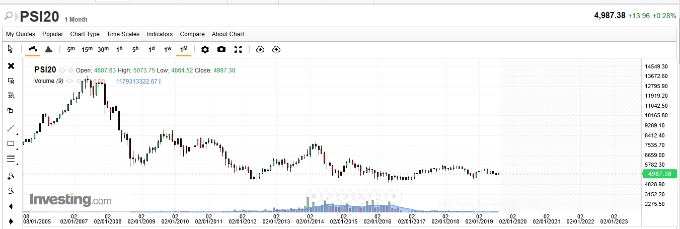 No momento actual sou muito céptico se é possível um bull market que dure mais que um par de anos, temos de passar um crise profunda para haver capacidade reformar a economia portuguesa e torna-la competitiva para o longo prazo. Seja quem seja que ganhe as eleições tem uma potencial perfect storm na mira e á partida vai ser um mandato muito complicado.