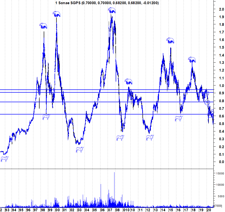 Deixo os gráficos actualizados da Sonae, em vários horizontes temporais,incluindo o gráfico de muito longo prazo.