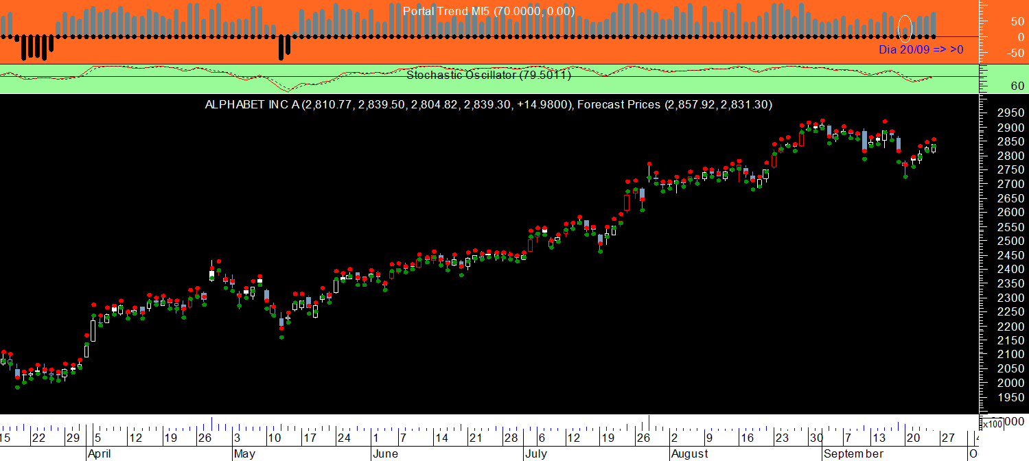 No dia 20 de setembro pode ser visto que o indicador de força na escala semanal (1º gráfico) e diária (2º gráfico) se encontrava positivo.