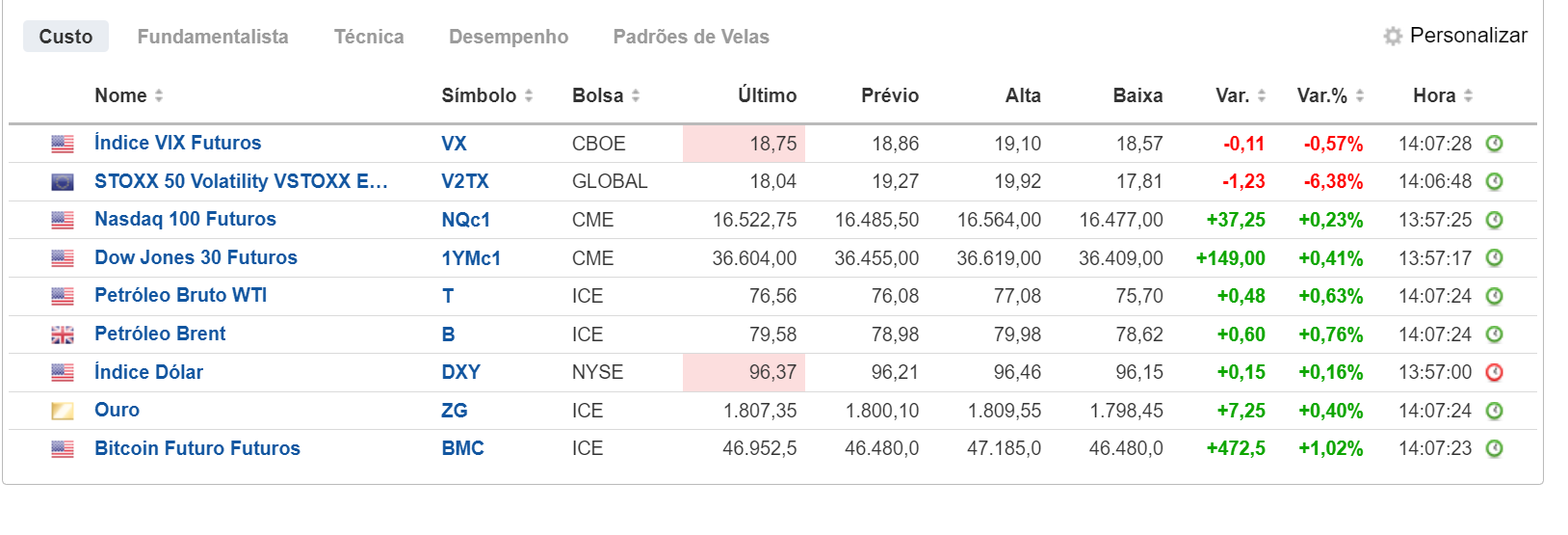 Indicadores antes da abertura de NY