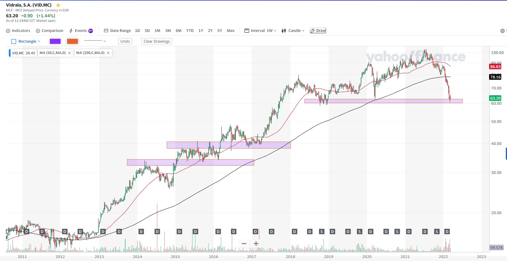 Um ponto relevante, que vai passar ao lado dos mestres da análise técnica aqui do burgo: a crise dos preços do gás atingiu fortemente toda a indústria vidreira (e não só) e isso explica a queda de todas as empresas do setor, incluindo a Vidrala, uma vez que o gás é o principal fator de custo. No entanto, a Vidrala é uma das produtoras de vidro mais eficazes do mundo, terminando 2020 com margens EBITDA na ordem dos 28%! Ao contrário da concorrência, a Vidrala tem uma boa capacidade para absorver melhor o impacto da subida de custos e ganhar quota de mercado nesta fase. Adicionalmente, partiu para esta "crise" com uma dívida líquida insignificante o que, a somar-se ao excelente track record de grandes aquisições na última década (Encirc e Santos Barosa), a coloca uma posição muito boa para adquirir mais empresas em condições muito favoráveis a prazo, já que o resto da indústria opera com alguma alavancagem financeira e pode entrar em dificuldades com o arrastar da conjetura.
