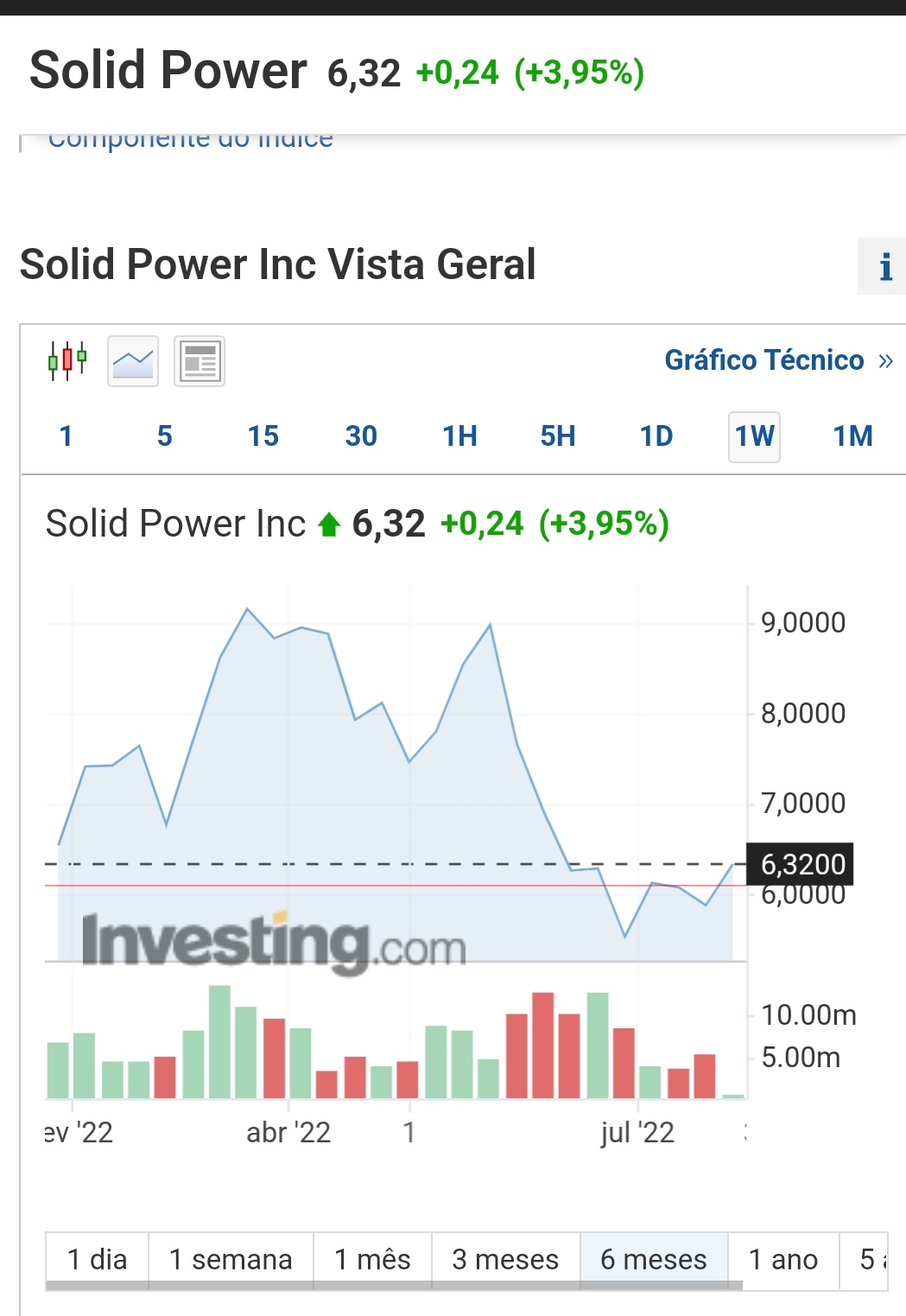 Fiz um pequeno investimento na Solid Power, à cotação do fecho de ontem ($6,32).