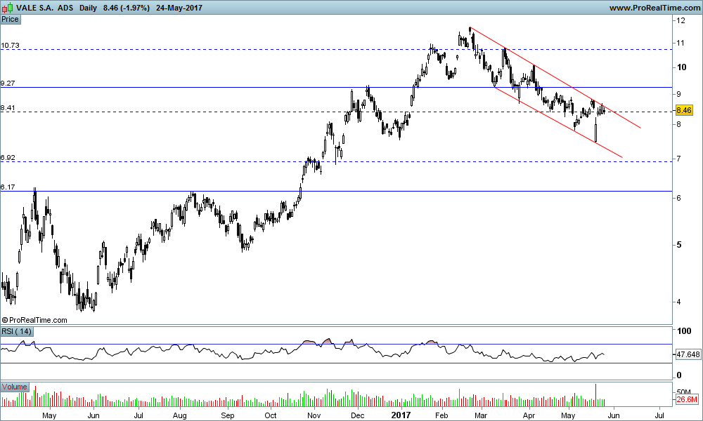 As ADRs Vale (NYSE:VALE) registra recuo de 12% frente ao fechamento de ontem e vai a US$ 7,50, enquanto o Itaú Unibanco (NYSE:ITUB) despenca quase 15%.