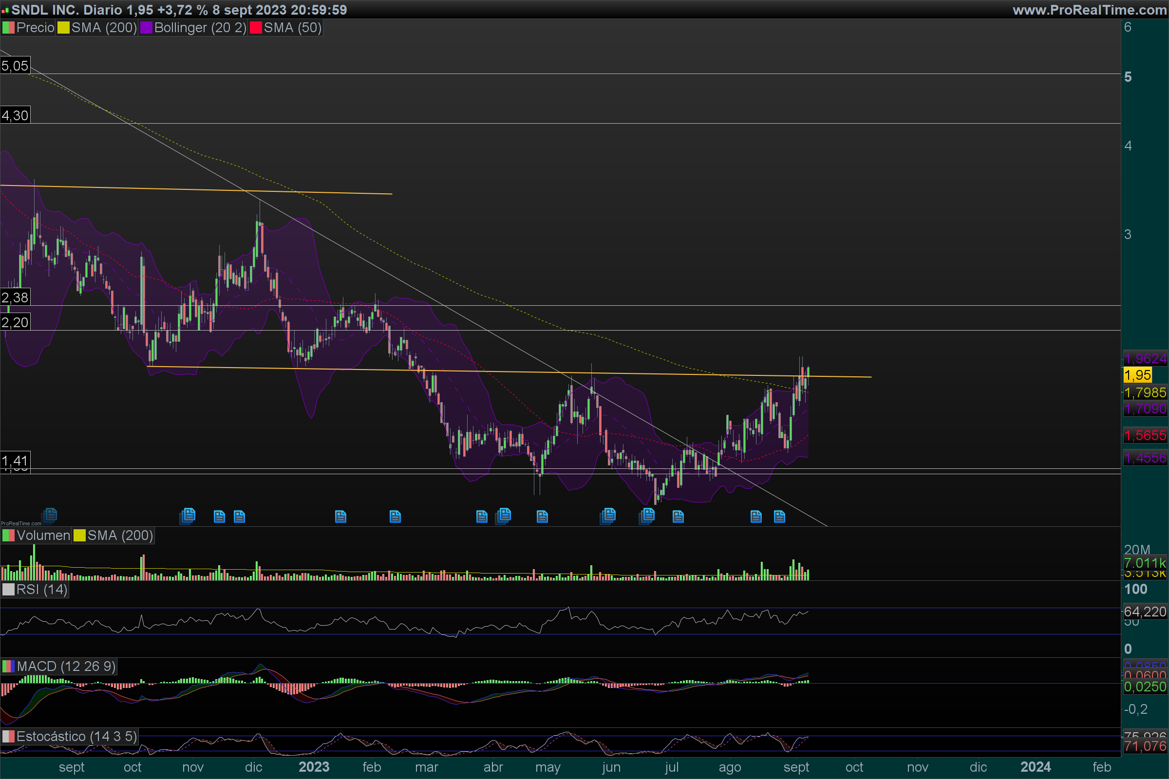 Portanto eu arrisco a dizer que se tiver mais um ou dois fechos nestes níveis o titulo SNDL passa a dever ser visto como estando em bull market ou seja as entradas devem ser longas quando existem sinais para isso.
