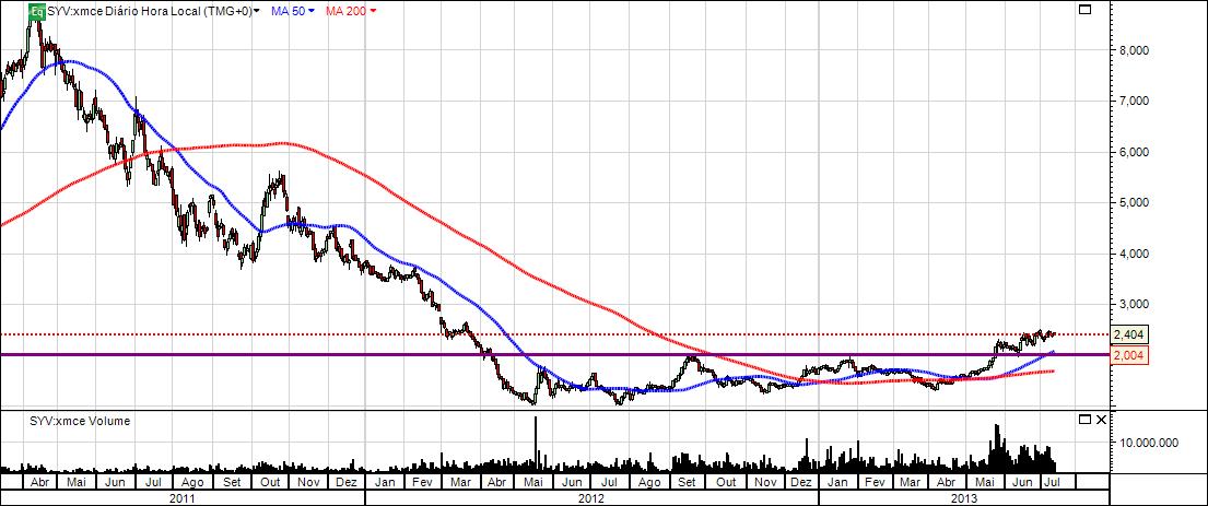 Depois de mais de um ano a cotar abaixo dos 2 Euros, e de duas tentativas goradas para quebrar essa resistencia, em Maio a Sacyr-Valle finalmente passou em alta essa barreira e com o respectivo volume a acompanhar. Até agora, manteve-se sempre acima deste valor.