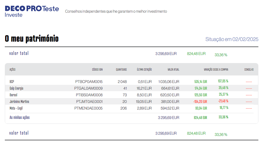 A carteira subiu 33,36%, enquanto o índice PSI subiu 8,36% % no mesmo período.