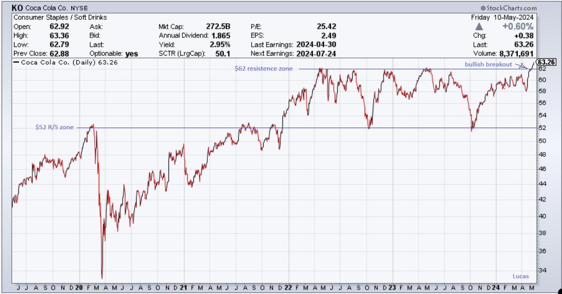 a coca cola encontra-se em bullish mode depois de ter quebrado em alta a zona de consolidação que esteve a construir nos últimos meses.