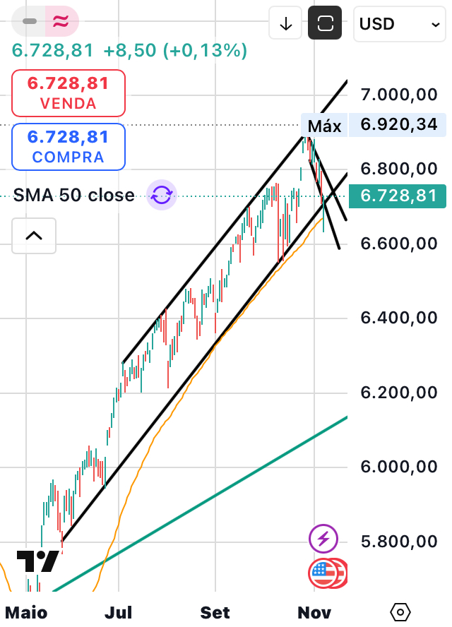 O S&P tocou tanto na linha como na média móvel, que podem funcionar como suporte, e acho que pode recuperar.