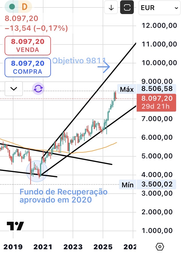 Vou aumentar as posições na carteira europeia 77 unidades da EDPR, aproximadamente 5974 euros em 3EUL (3x Euro Stoxx 50) e aproximadamente 6388 euros em 3DXE (3x DAX).