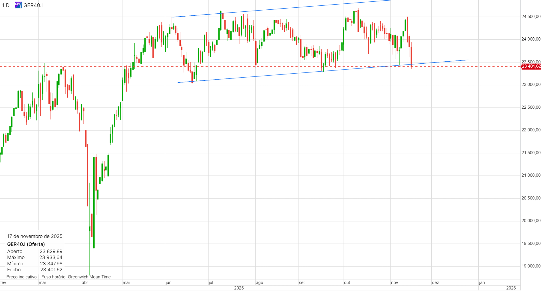 O Dax anda agora neste canal ligeiramente descendente e sexta era dia de meter uns curtos. Não o fiz, e não tenho posições.