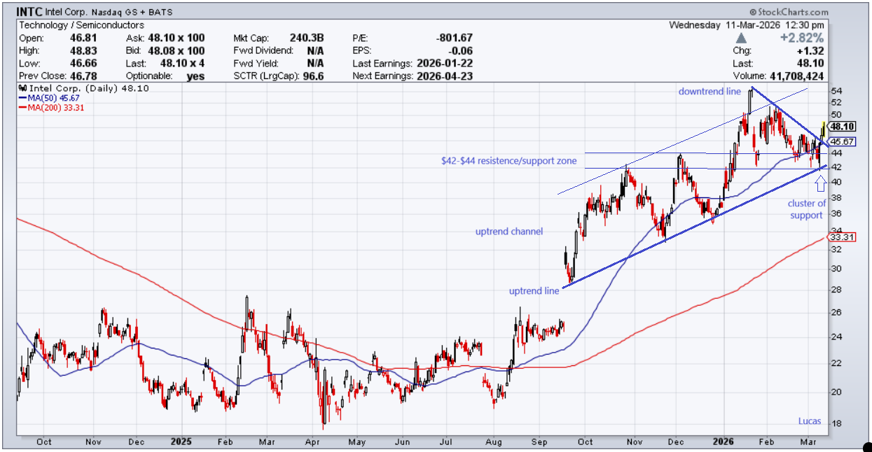 A Intel, na qual tenho uma posição longa (metade comprada perto dos máximos