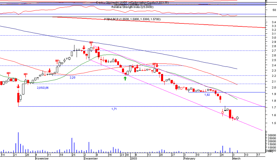 eparating lines occurred. If the lines occur during an uptrend and the first line is black and the second is white (which is not the case with PTBVLEDP) then this suggests that the uptrend should continue.