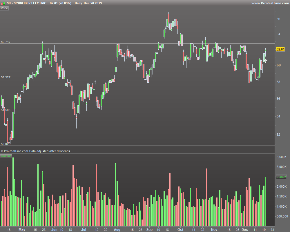 A Schneider tem vindo a recuar a toda a velocidade, depois de ter ido aos 66,99 em Setembro, começou a recuar e já está nos 60,33 - bem abaixo do suporte.