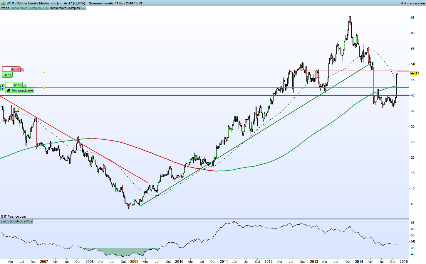 Posição fechada a 46,65 na WFM (47,5) +1,8% Short CFD 10%.