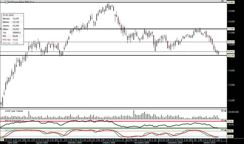 Como a Axa tem sido muito fiel as suas resistencias/suportes o cenario nao e muito risonho. Esperemos que a zona dos +-14,00/13,80 consiga aguentar em caso de queda. Bom seria realmente ela ultrapassar os 15,10...