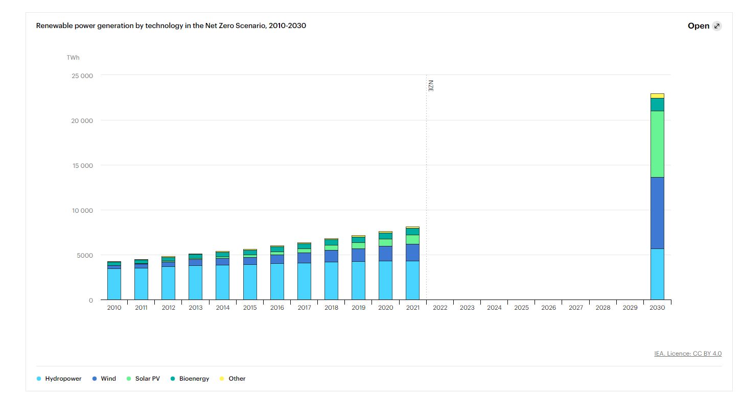No final de 2022, a capacidade (potência) instalada de geração de energia renovável, no mundo, atingiu uns impressionantes 3.372 Gigawatts (GW). E ano após ano, continua a crescer a níveis record.