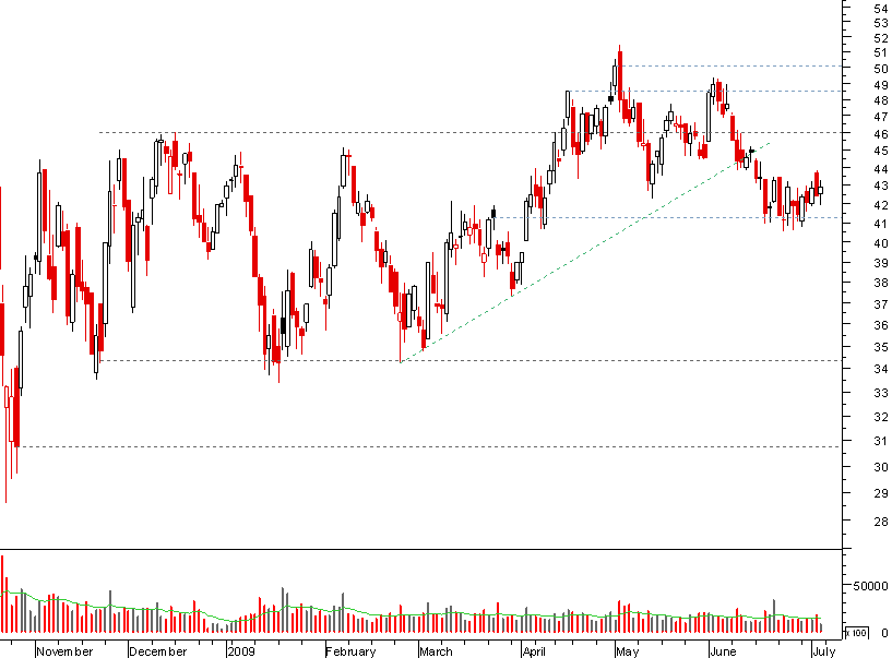 Eu tinha identificado uma resistência a 46 mas omiti-a do gráfico porque deixou de me parecer relevante (já foi cruzada várias vezes para cima e para baixo).