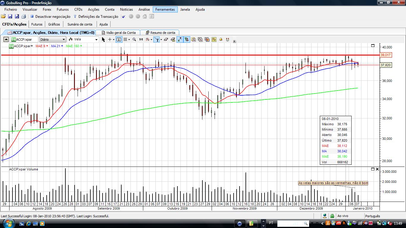 Quanto ao teu comentário sobre se é nos € 39,00 ou nos € 40,00, isto é de todo irrelevante já que, na minha visão, o que vale é a "zona" e não valores absolutos. Discutir por conta de € 0,50 para cima ou para baixo é pura perda de tempo quando aquilo que queremos é ter uma visão ampla da situação técnica da cotação.
