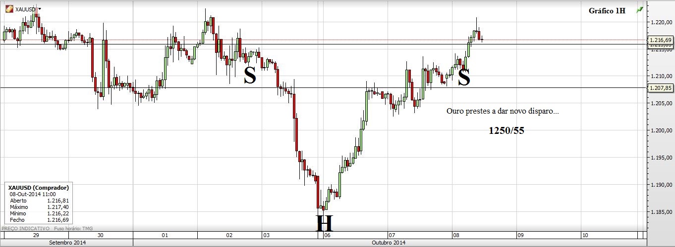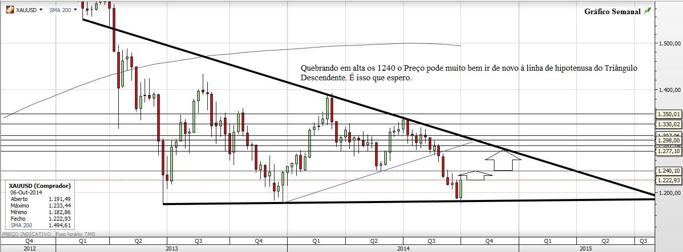 Sendo coerente com as ideias expressas ontem nos Gráficos do Ouro, naturalmente Longo desde ligeiramente acima da base do Triângulo e até aos 1240 (espero...)