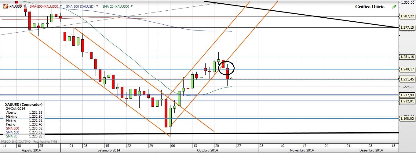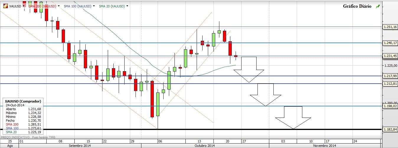 Na minha modesta opinião o Ouro vai agora lateralizar por uns tempos ou subir ligeiramente antes de retomar novamente o sentido descendente. Estou fora do Ouro e sem nenhum activo financeiro.