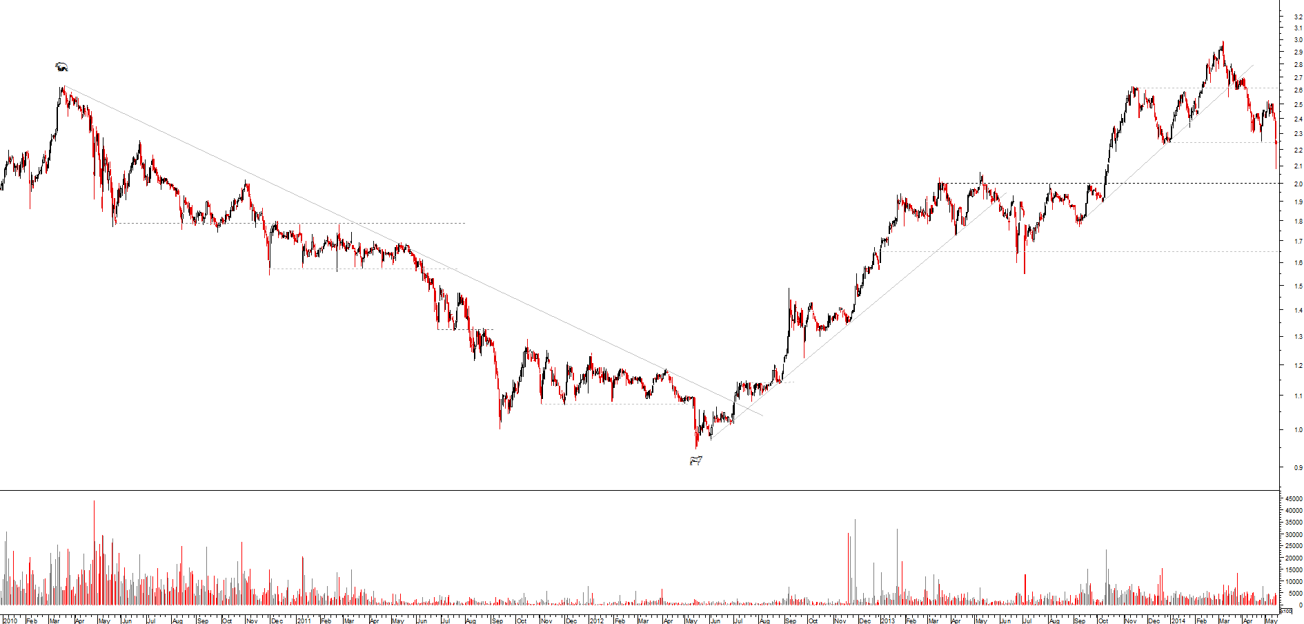 vistas as coisas de longe, para mim a fronteira para o bear market está cá mais abaixo, na zona dos 2 euros, embora caso venha a cotar abaixo dos 2.24 a coisa já começa a ficar muito tremida..