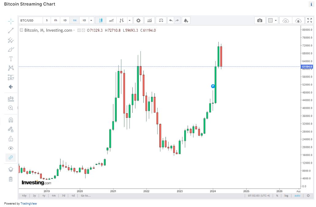 Bitcoin com vela mensal suspeita.