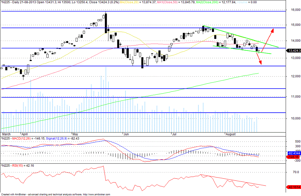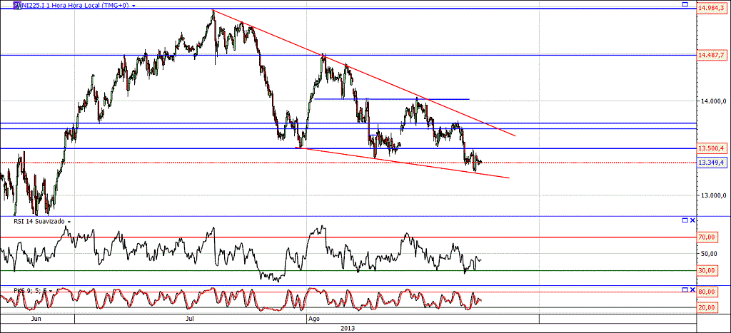 A cunha está lá e é das que diz que o nikkei pode arrebitar, mas ela só é activada acima dos 13750. A ver vamos.....