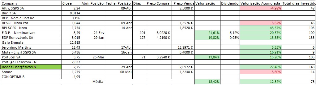 Os resultados estão a ser muito interessantes e já levo uma rentabilidade bruta de 20%, face a rentabilidades inferiores a 10% quer do PSI20, quer do SP500.