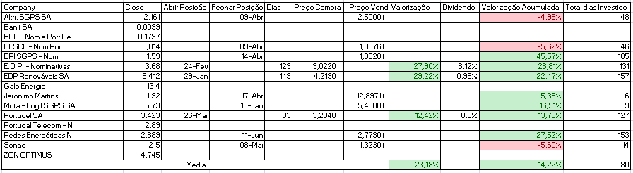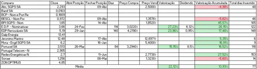 Amanha temos o último dia de negociação do mês de Junho e depois teremos em breve um comentário à evolução da carteira e da negociação que tem vindo a ser feita.