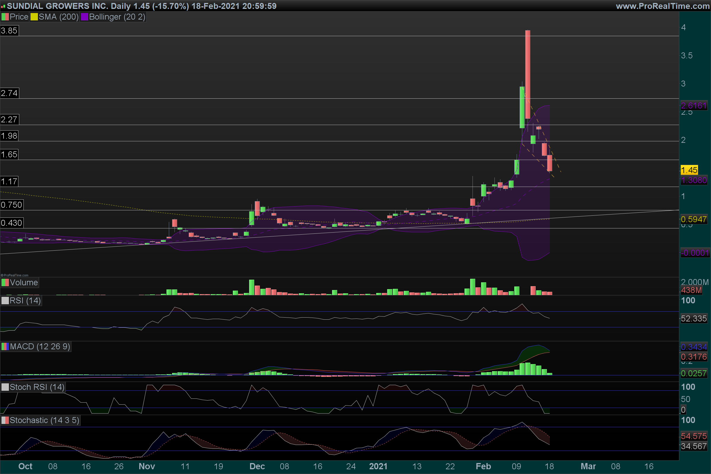 Bem, no que toca à Sundial, começo a ficar nervoso, pois nos tempos que correm valorizações acima de 50% em 2 dias "é obsceno e raro". A Sundial tem um GAP nos 2,02$ no diário, e 2,12$ no horário......A Tilray então....nos 59$