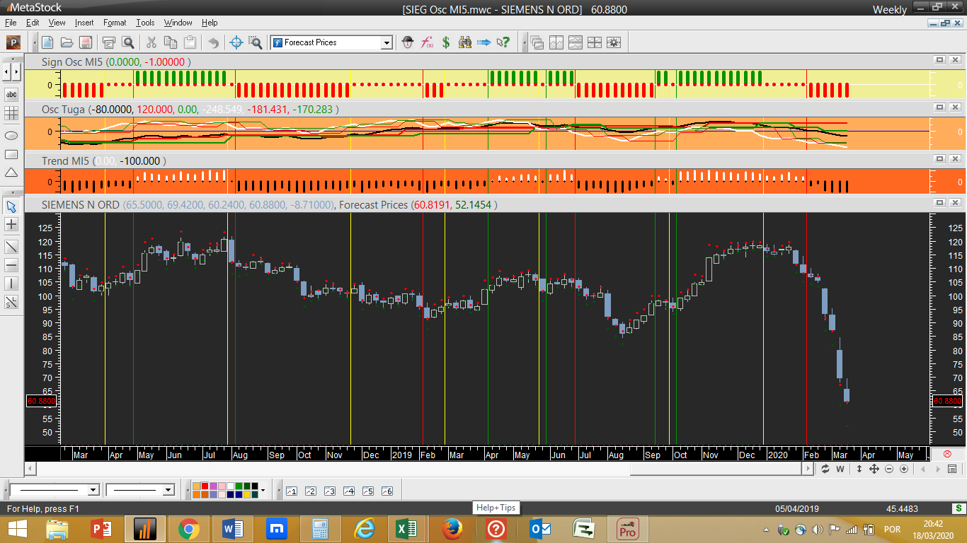 No gráfico do dia, ver abaixo, coube hoje a vez à Siemens. A amplitude da descida é impressionante e fornece uma imagem tipo do que se passa com a generalidade dos papéis analisados no sector da carteira que representa a Europa. Não admira o motivo pelo qual o programa insiste numa posição vendedora.