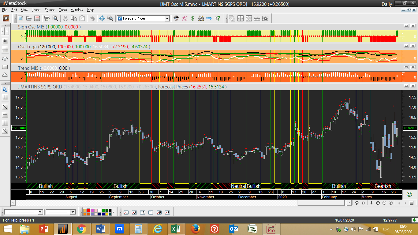 Cá estaremos para ver mas, se atentarmos nas posições maioritárias diagnosticadas para o curto e médio prazo pelo sistema de trading “Osc MI5”, creio que será muito difícil aos mercados escapar a novos mínimos nas próximas semanas que teremos pela frente uma vez que o medo continua a dominar em termos da emoção predominante. Ou seja, em termos da psicologia das multidões que participam nos mercados, a vontade de vender prevalece nesta altura sobre a vontade de comprar.