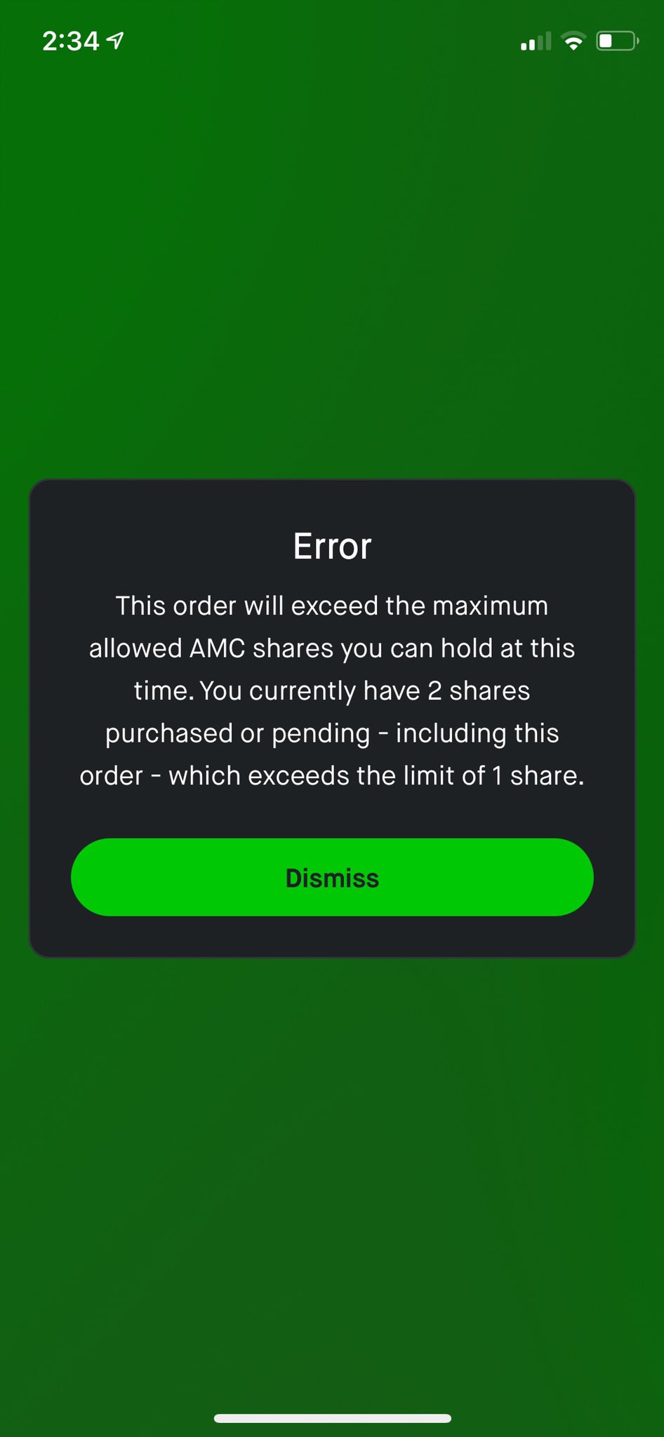 pemides2 Escreveu:Eu tinha comprado um pequeno montante de AMC no Revolut para tentar apanhar a onda, e tinha posto um stop loss (market order) com trigger a 12$. Depois do mercado cair dos 12$, a minha ordem stop foi cancelada passando para um status "Rejected". Quando dei por isso já o mercado estava nos 8$ e vendi com uma bela perda.
