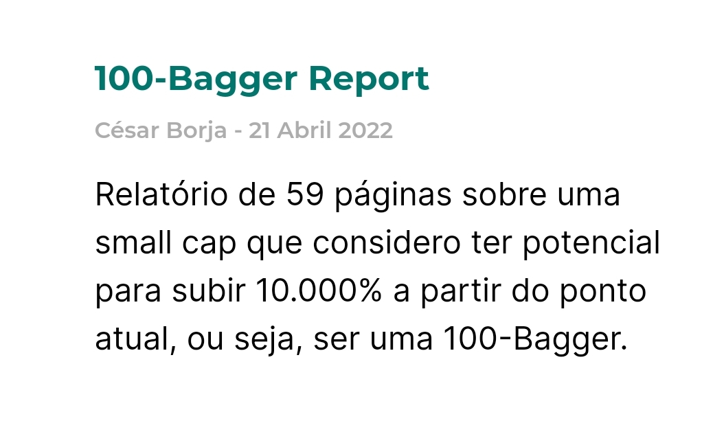 Este título tem sido muito "empurrado" por um analista célebre nos mercados portugueses, que tem dado a visão que esta companhia pode ser uma potencial multibagger. Eu não concordo nem discordo, embora assumindo sempre a velha máxima do relógio avariado, que por vezes até está certo.