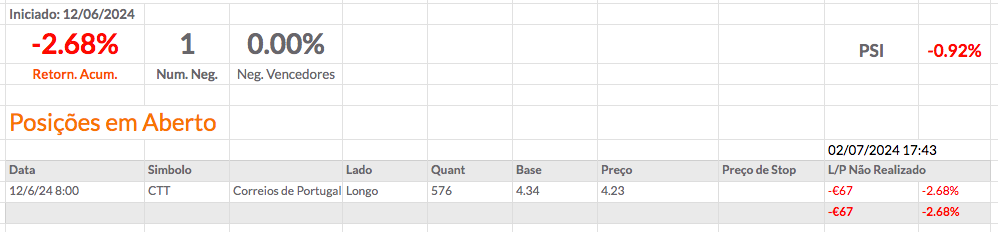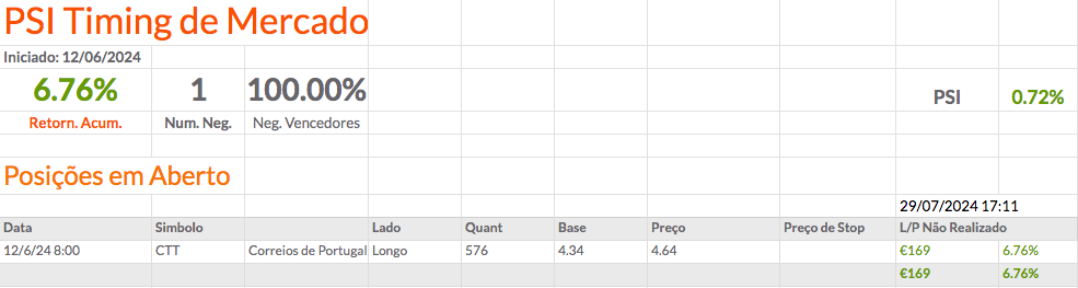 Falando de outra ação, a CTT já começa a mostrar porque foi a única ação que escolhi na carteira de timing de mercado