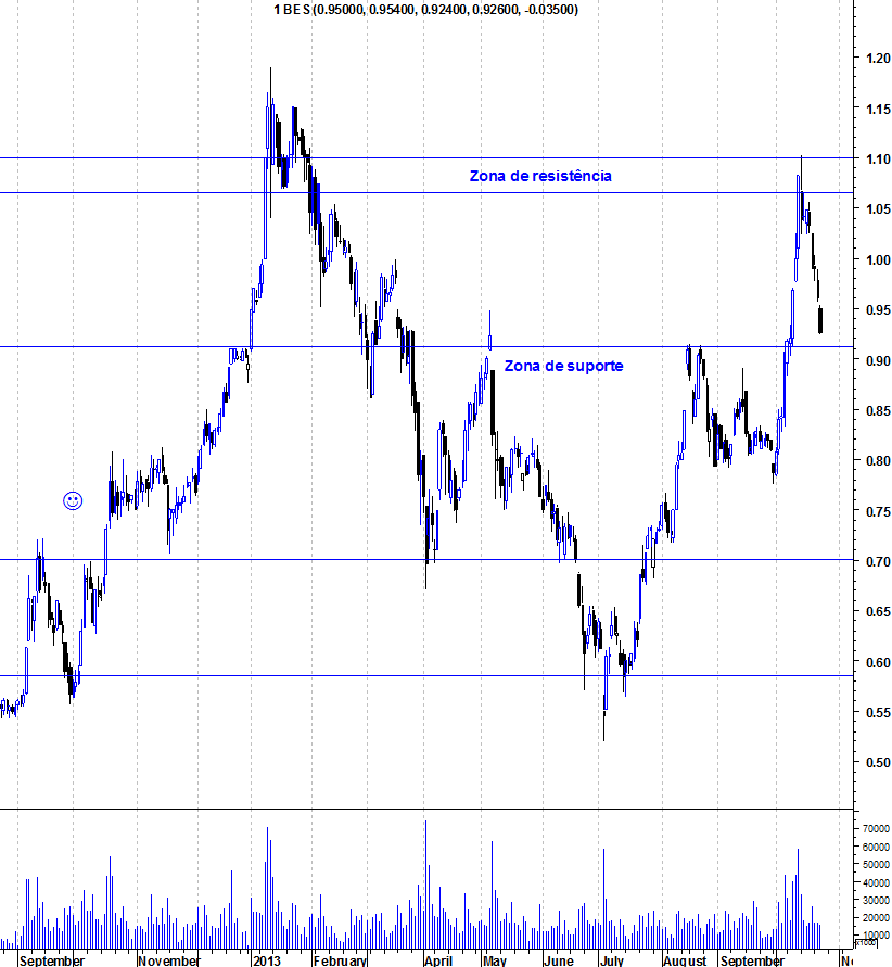 O Bes bateu há alguns dias atrás numa resistência com a mesma importância que tem a dos 6400 no PSI e que ontem provocou o recuo do índice.
